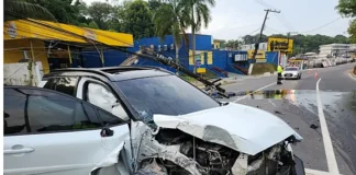 Trânsito prejudicado após carro colidir com poste na Avenida do Turismo