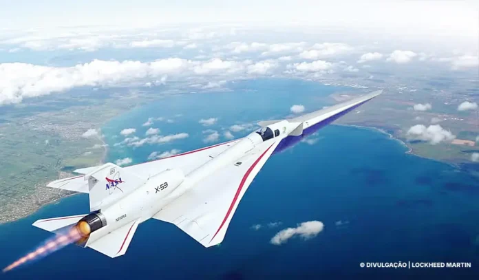 EUA — O avião supersônico X-59 da NASA está sendo desenvolvido para superar um dos maiores desafios da aviação supersônica: o barulho ensurdecedor causado pelo estrondo sônico. Ao contrário do Concorde, que marcou época nos céus, mas acabou proibido por provocar um ruído intenso, o X-59 foi projetado para voar acima da velocidade do som sem gerar esse estrondo. Seu design com nariz alongado, asas inclinadas e motor posicionado no topo da fuselagem ajuda a espalhar as ondas de choque, reduzindo o impacto sonoro para um som suave, similar ao de uma porta de carro se fechando, apelidado de “sussurro supersônico”.