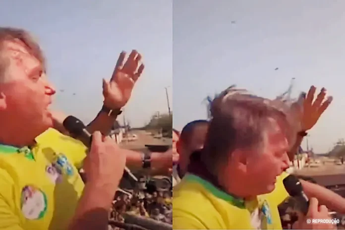 Nas imagens que circulam nas redes sociais, mostra bolsonaro em cima de um trio elétrico discursando, quano de repente um enxame de abelhas apareece e impede o ex-presidente de continuar o seu ato.