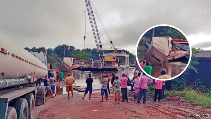 Segundo relatos de testemunhas, o acidente ocorreu durante uma tentativa de embarque durante a cheia dos rios. O caminhão perdeu o equilíbrio e tombou na margem, caindo parcialmente na água. Apesar do susto, ninguém se feriu.