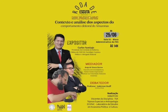 O professor Jorge de Moura Barros, do Departamento de Contabilidade, será o mediador do encontro; o professor Anderson Litaiff, do Departamento de Economia, participará como debatedor e o presidente da Comissão de Reforma Política, da Ordem dos Advogados do Brasil – Seccional Amazonas – OAB/AM, Carlos Santiago fará exposição e análise da conjuntura política do Estado.