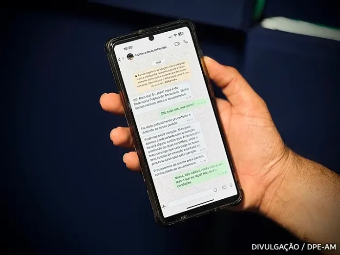 MANAUS, AM — A Defensoria Pública do Amazonas (DPE-AM) alerta sobre uma onda de golpes envolvendo cobranças fraudulentas por processos em andamento. Criminosos utilizam mensagens via WhatsApp com informações pessoais das vítimas, números de processos e até documentos falsos com a marca do Tribunal de Justiça do Amazonas para exigir valores como R$ 4.999,75 ou R$ 1.000,00. Em um caso, uma vítima chegou a pagar a quantia exigida antes de perceber a fraude e registrar o ocorrido na Delegacia Virtual.