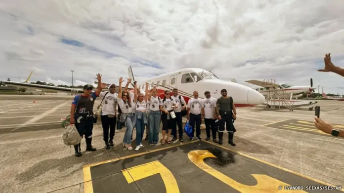 O deslocamento inclui transporte aéreo e fluvial de equipamentos como: