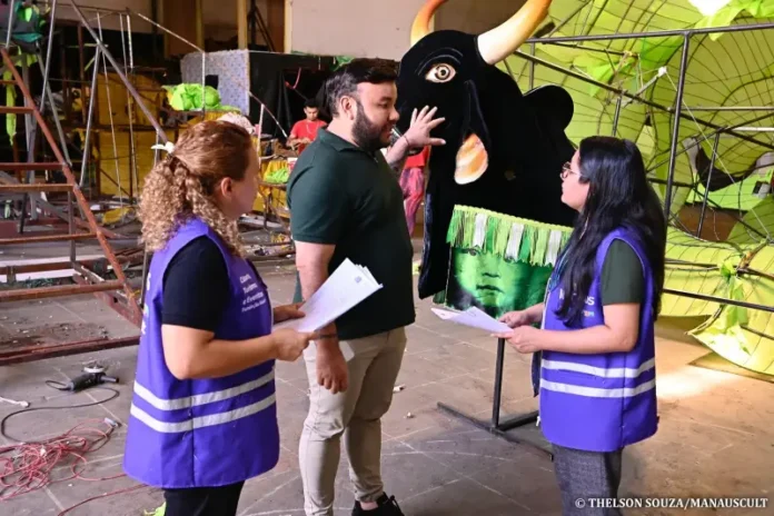 MANAUS — A Prefeitura de Manaus, por meio da Fundação Municipal de Cultura, Turismo e Eventos (ManausCult), fiscalizou nesta terça-feira (22/7) os barracões das seis associações folclóricas da categoria Ouro do Festival de Bois-Bumbás. A ação visa garantir o uso adequado dos recursos repassados para as apresentações no sambódromo.