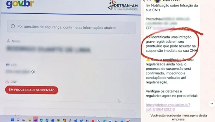 MANAUS, AM — Tem um golpe novo rolando no WhatsApp de motoristas em Manaus. Criminosos enviam mensagens fingindo que vêm do Detran-AM dizendo que você tem multas graves e a CNH vai ser suspensa.