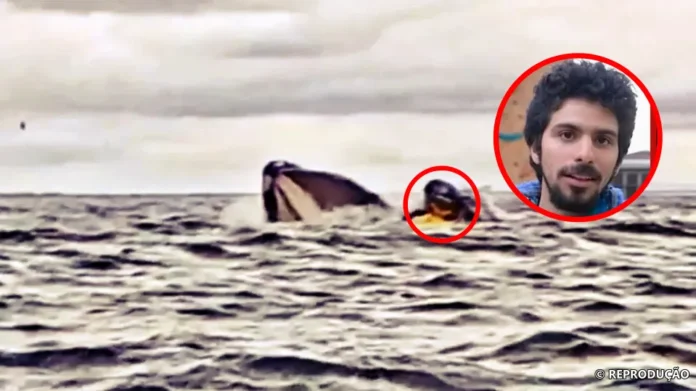 CHILE — Um passeio de caiaque no Estreito de Magalhães, no Chile, transformou-se em uma cena surreal para Adrián Simancas, de 24 anos. No dia 8 de fevereiro, enquanto remava na Baía de Águila, em Punta Arenas, uma baleia-jubarte emergiu subitamente e o engoliu. O pai do jovem, Dell Simancas, que filmava o momento, presenciou o susto: o mamífero, após segundos com Adrián em sua boca, o expeliu de volta à superfície. Graças ao colete salva-vidas, o venezuelano conseguiu nadar até o barco do pai ileso, encerrando o incidente com um desfecho milagroso.
