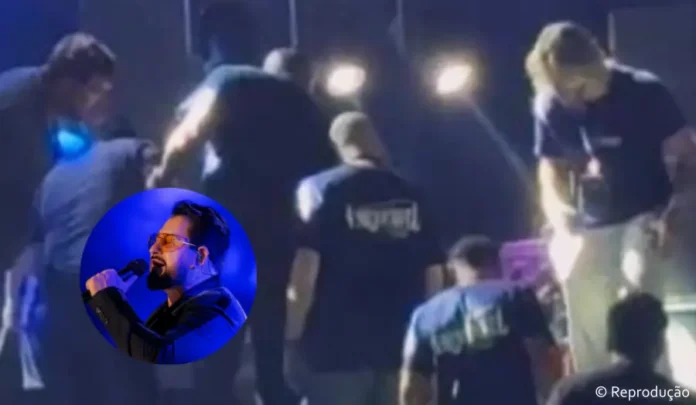 GOIÂNIA, GO – O show da dupla sertaneja Bruno e Marrone, realizado na noite deste sábado (10) em Goiânia, foi marcado por um susto. O cantor Marrone sofreu uma queda do palco, atingindo a cabeça durante a apresentação, conforme imagens que circulam nas redes sociais.