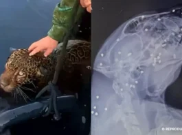 Onça-pintada baleada retorna à natureza com coleira de monitoramento