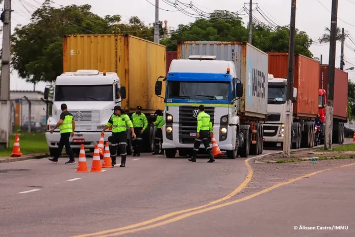 MANAUS, AM — Falta de documentação, pneus desgastados e veículos sem itens obrigatórios foram algumas das irregularidades encontradas pela Prefeitura de Manaus, por meio do Instituto Municipal de Mobilidade Urbana (IMMU), durante a operação “Carga Pesada”, realizada na avenida General Rodrigo Otávio Jordão Ramos, zona Sul da cidade, nesta terça-feira, 11/2.