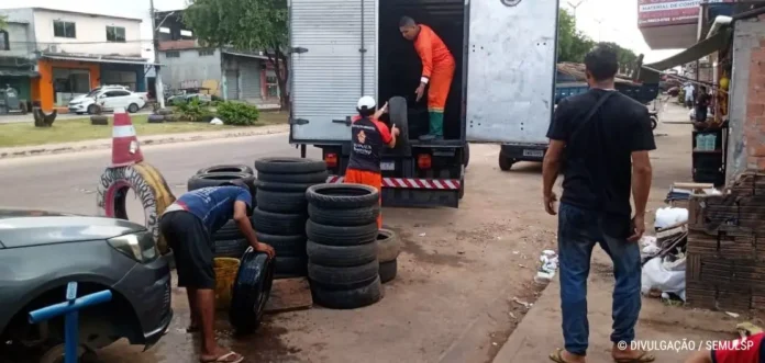 MANAUS, AM — A Prefeitura de Manaus, por meio da Secretaria Municipal de Limpeza Urbana (Semulsp), recolheu mais de 2 mil pneus descartados de forma irregular nas ruas da capital amazonense entre os dias 4 e 21 de fevereiro. Somente na última sexta-feira, 21/2, foram coletadas 1.561 unidades, principalmente nos bairros da zona Centro-Oeste, como Dom Pedro, Santo Antônio, Alvorada, Compensa e São Jorge. A ação também abrangeu os bairros Zumbi, na zona Leste, e Cachoeirinha, na zona Sul.