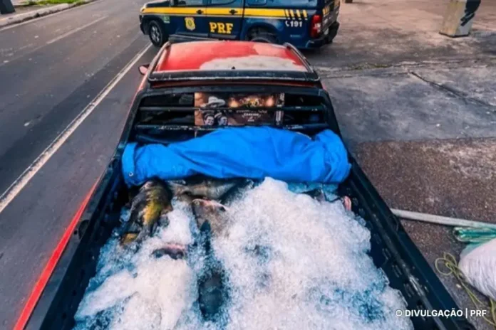 Durante fiscalização na BR-319, em Manaus, policiais deram ordem de parada a um veículo e constataram que o motorista transportava cerca de 400 quilos de tambaqui em condições inadequadas de conservação. O pescado estava na caçamba do veículo, sem refrigeração apropriada, isolamento térmico ou revestimento sanitário.