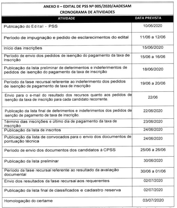 Confira o cronograma do edital: