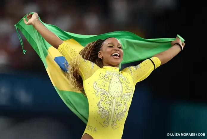 PARIS, FRANÇA — Rebeca Andrade iluminou a Bercy Arena, em Paris, nesta quinta-feira, com o brilho de sua quarta medalha olímpica e mostrou que a prata pode, sim, reluzir tanto quanto o ouro. A ginasta brasileira repetiu o desempenho de Tóquio e se tornou mais uma vez vice-campeã do individual geral das Olimpíadas, ficando atrás apenas da americana Simone Biles. A americana foi coroada pela segunda vez a número 1 do mundo, um raro bicampeonato olímpico para selar sua história de redenção após ter deixado as disputas nos Jogos do Japão para cuidar da saúde mental.