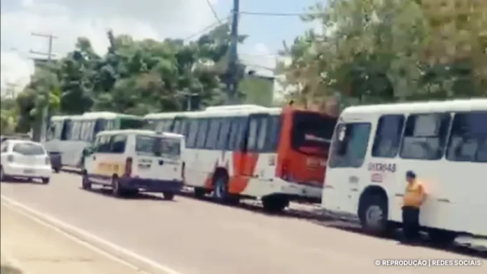 Ônibus foram estacionados estrategicamente na Avenida Brasil, próximo à sede do Governo do Estado, no bairro Compensa, como forma de pressão.