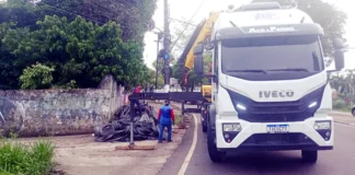 Trânsito na Ephigênio Salles bloqueado após cabos caírem de carreta