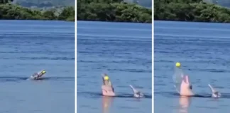Vídeo mostra botos-cor-de-rosa brincando no Rio Negro