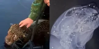 Onça-pintada atingida por 30 tiros volta à floresta em breve