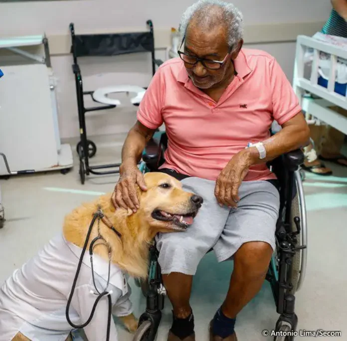 Os cães da raça Golden Retriever fazem parte do Projeto AnimaPet, coordenado pela neuropsicopedagoga Samanta Jaime. Segundo ela, os animais são cuidadosamente selecionados, passam por treinamento específico e rigorosos cuidados de saúde para atuar nesse tipo de intervenção. “A expressão de felicidade das pessoas ao interagir com os cães tem um impacto direto no bem-estar e na evolução do tratamento, especialmente para quem está hospitalizado”, destaca.