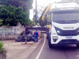 Trânsito na Ephigênio Salles bloqueado após cabos caírem de carreta