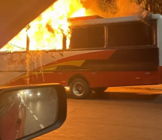 Micro-ônibus pega fogo na Rodrigo Otávio e deixa via interditada