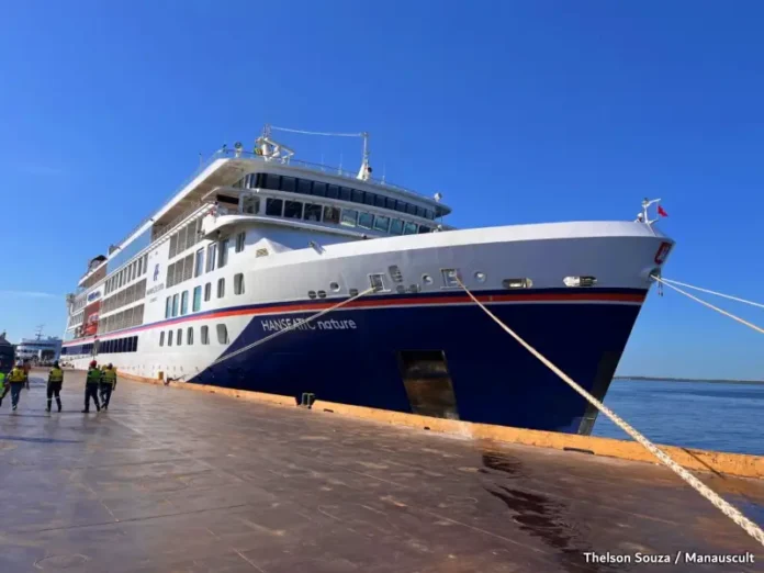 MANAUS, AM — A Prefeitura de Manaus, por meio da Fundação Municipal de Cultura, Turismo e Eventos (Manauscult), celebrou, na segunda-feira (5), a chegada do último navio da temporada de cruzeiros 2024/2025. A embarcação Hanseatic Nature, de bandeira alemã, atracou no porto de Manaus trazendo a bordo 375 visitantes, entre passageiros e tripulantes, consolidando a importância da cidade como destino turístico fluvial internacional.